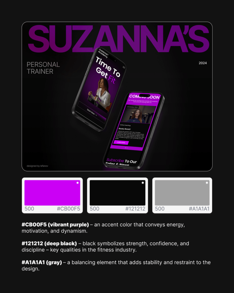 - #CB00F5 – A vibrant purple used as an accent color to bring energy, motivation, and dynamic vibes.