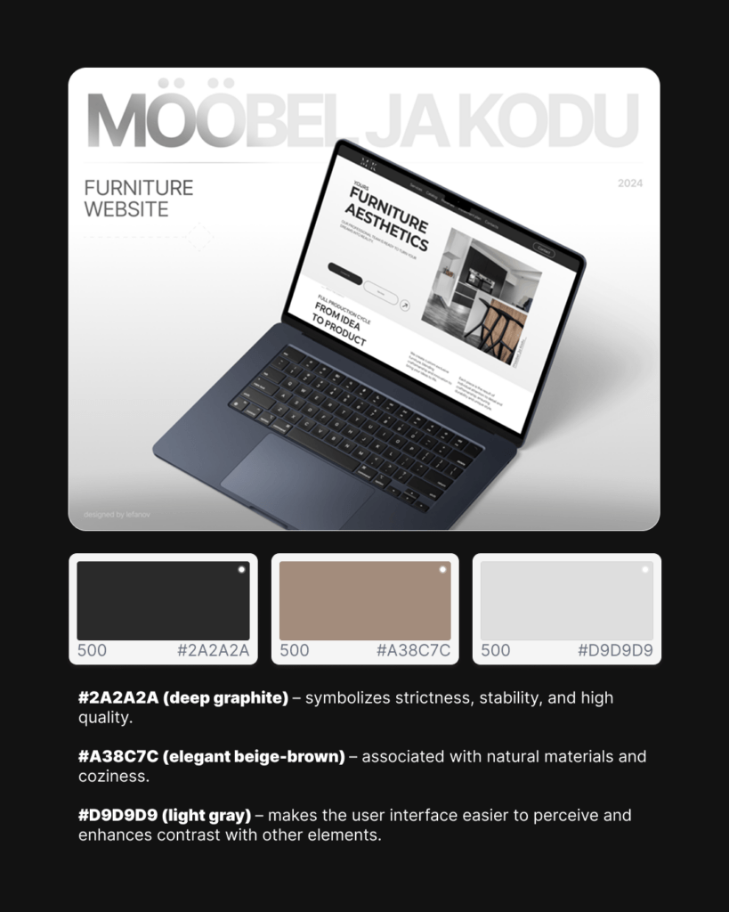 - #2A2A2A – Graphite black that signals stability and premium feel.