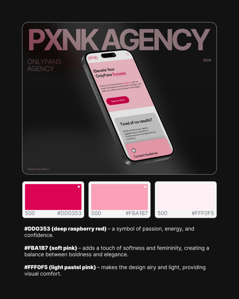 This palette is a masterclass in balancing boldness with softness — ideal for brands in beauty, wellness, or anything women-focused.