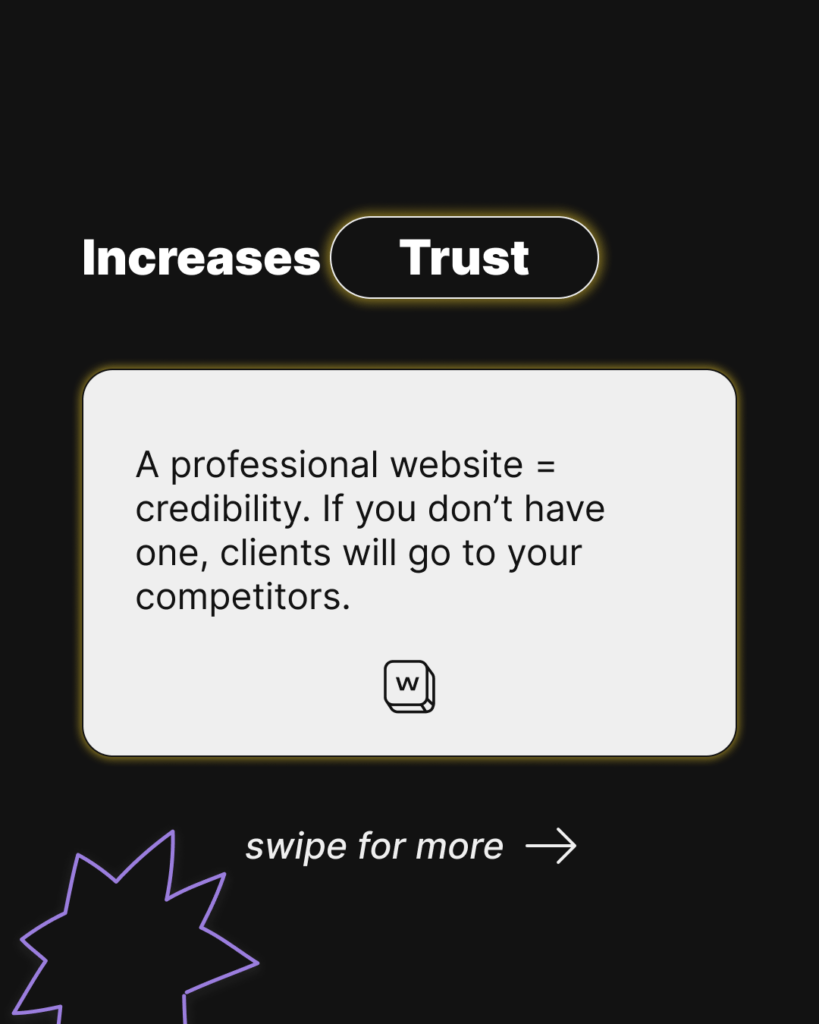Would you buy from a business that has no online presence? Without a website, your brand seems outdated and unreliable. A professional website builds trust and authority.